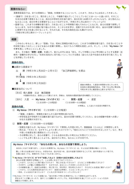 令和9年度埼玉県公立高等学校入学者選抜(主に令和7年度の中学校2年生が受検する入試)面接について
