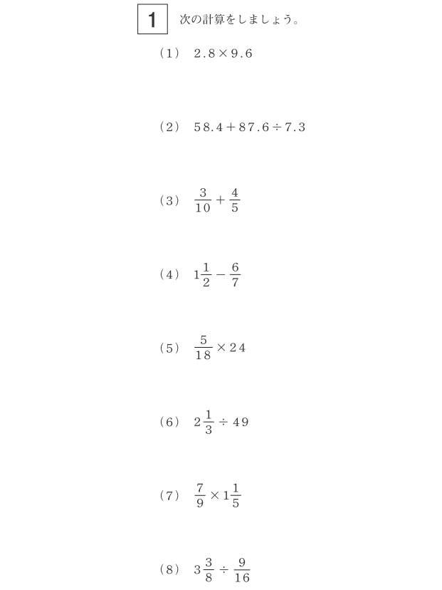数検6級(小学校6年レベル) 2017年4月25日 user 数検6級 これは数検6級(小学校6年生レベル)の問題。 数学・算数が得意ではない子の場合、前の学年の内容に戻って学習することで、今の学年の数学・算数が解けるように工夫していきます。 例えば中1の場合なら、写真の数検6級・6年生の算数の内容を平行して学習することで、中1の内容もできるようになってきます。