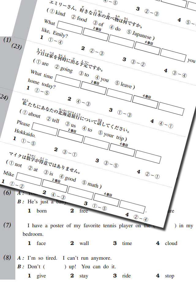 英検4級のレベル 2017年5月23日 user 英検4級 英検のレベルは5級が中1、4級が中2、3級が中3となっているので、高校受験の内申点を考えると、中3の6月(または10月)までに英検3級に合格しておきたいところです。 これを逆算して考えると、4級を中2の6月までに合格できればベストでしょうか。 写真の並べ替え問題が4級の内容です。