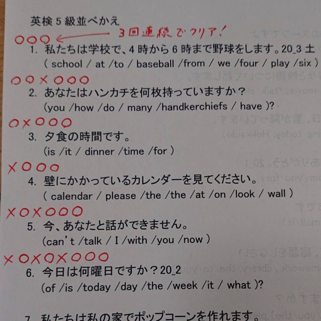 3回連続〇でクリア 2021年1月27日 user 教室でもチラっと言ったことがある、問題の進め方の一例。 問題を解いていって、できたら〇、間違ったら×をつけていき、3回連続〇でその問題は卒業、クリア! 3回連続〇になるまで繰り返す。 この「3回連続」という基準は2回連続でもいいし、5回連続でもいいでしょう。 こうやって繰り返すことで、できる問題は無駄にやらなくて済むし、できない問題は何度でも間違えるので、とにかく繰り返す必要が出てくる。 テスト前のワークなどもこうやって繰り返すと効率的です。