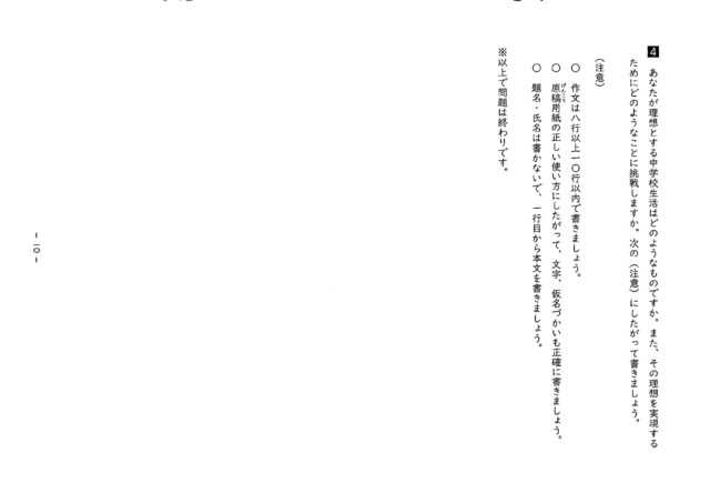 作文の問題 2022年4月15日 user 埼玉県立伊奈学園中学校の過去問、大問4、作文の問題です。 「あなたが理想とする中学校生活はどのようなものですか。また、その理想を実現するためにはどのようなことに挑戦しますか。」というテーマです。 これも、いくら国語の成績が「ずっと3」だったとしても、得点できるように書けるかどうかは別です。 夏休みの読書感想文とは異なります。 (参考)伊奈中の過去問 https://inagakuen.spec.ed.jp/jhs/%E5%85%A5%E5%AD%A6%E3%82%92%E3%81%8A%E8%80%83%E3%81%88%E3%81%AE%E6%96%B9%E3%81%B8/%E9%81%8E%E5%8E%BB%E3%81%AE%E5%85%A5%E5%AD%A6%E8%80%85%E9%81%B8%E8%80%83%E5%95%8F%E9%A1%8C