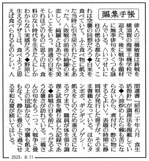 編集手帳 8月11日(金)