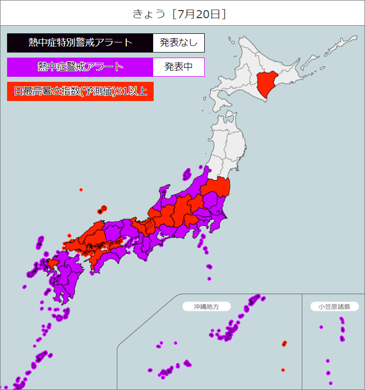 熱中症特別警戒アラート・熱中症警戒アラートの発表状況