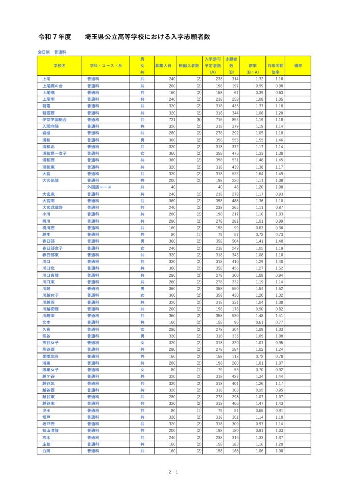 令和7年度埼玉県公立高等学校入学者選抜志願者数(令和7年2月10日現在) 2025年2月10日 user https://www.pref.saitama.lg.jp/documents/241544/r702101430shigansha.pdf